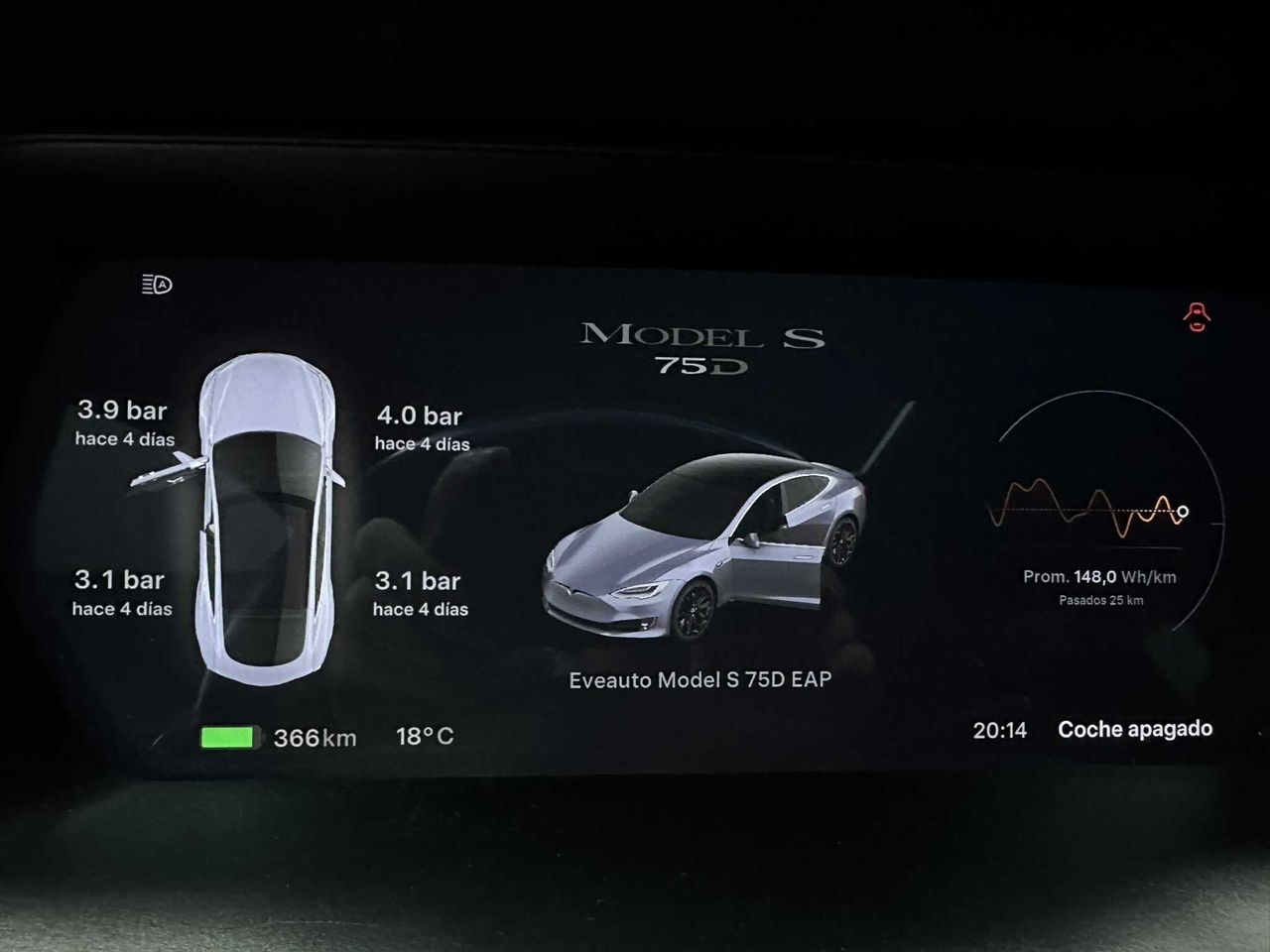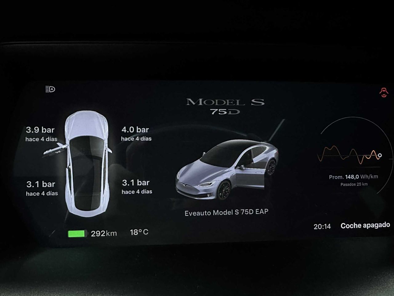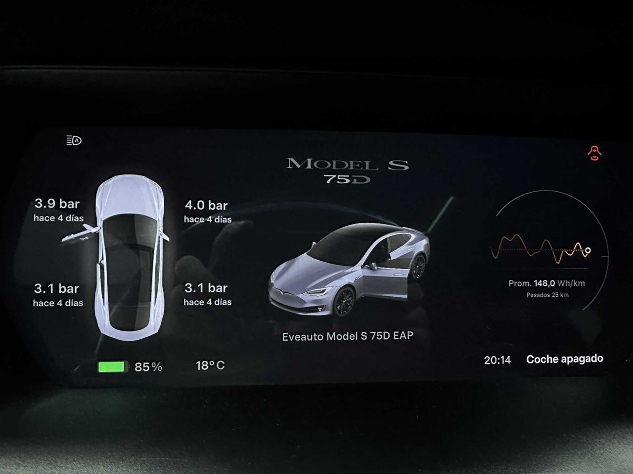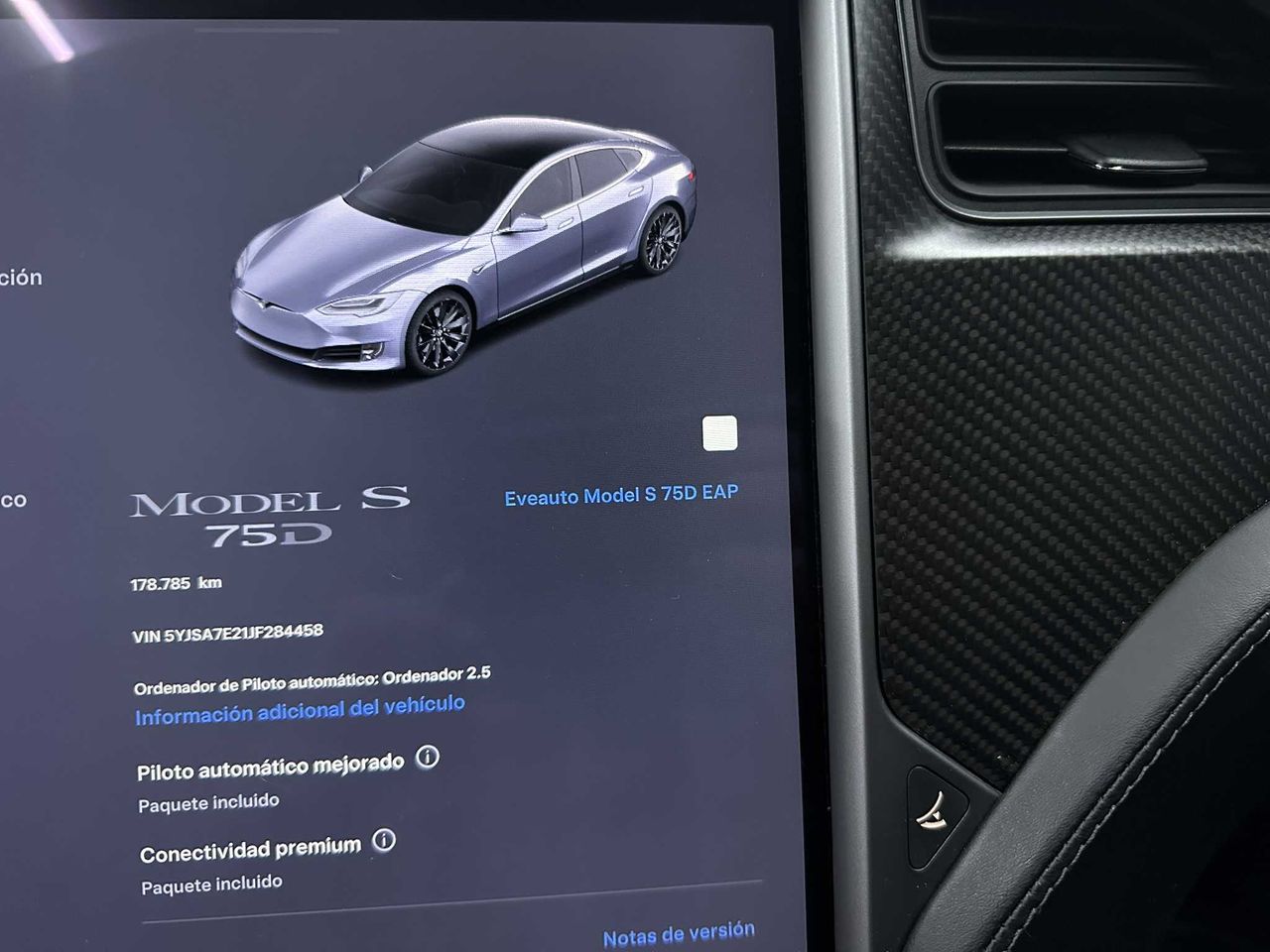 Tesla Model S 75D Dual Motor 4x4 420 cv del 07/12/2018, gris con interior premium en color negro de 5 plazas, autonomía indicada al 100% de 350 km reales.