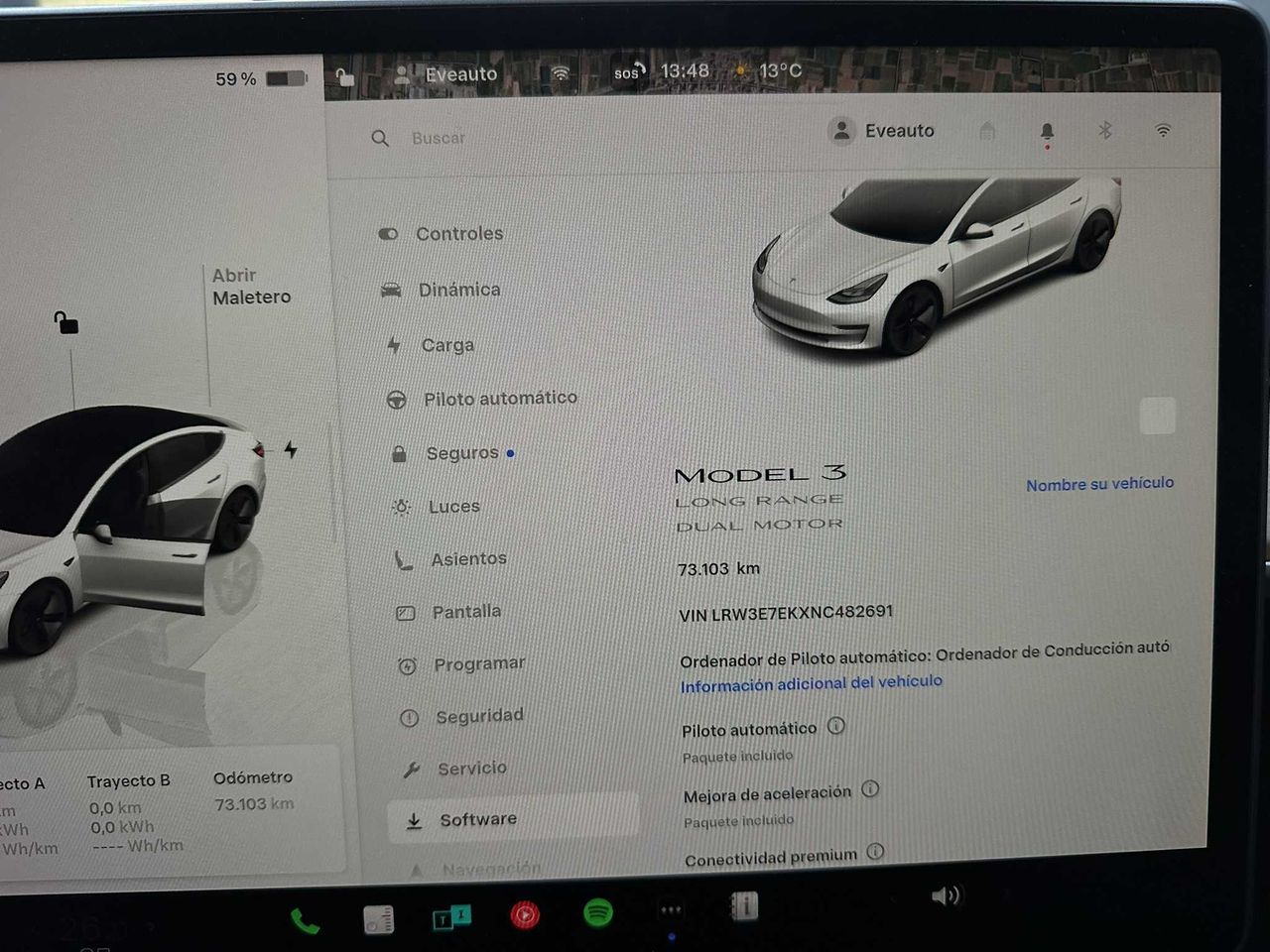 Tesla Model 3 Long Range Gran Autonomía con motor dual y tracción integral (460cv y de 0-100km/h en 3.9s). Primera matrícula 17/02/2022 y tiene 73.000km. Cuenta con una autonomía real de 510km. Garantía oficial en motores y batería hasta 2/2030 o 192.000km