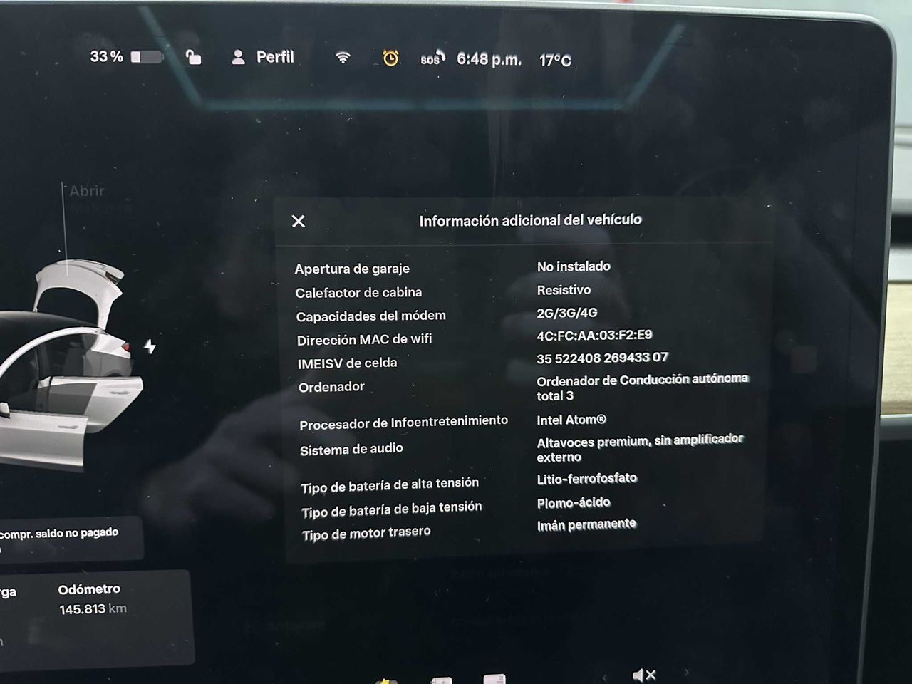 Model 3 Tracción trasera en perfecto estado, primera matrícula 01/12/2020 con 145.000km, fabricado en China y tiene batería LFP.