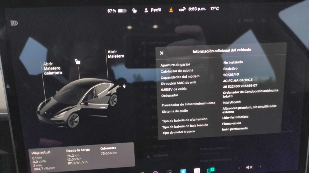 Model 3 Tracción trasera en perfecto estado, primera matrícula 05/12/2020 con solo 75.000km, fabricado en China y tiene batería LFP.